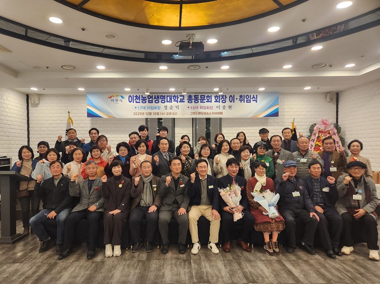 [이천시 세계타임즈=송민수 기자] 이천농업생명대학 총동문회는 지난 12월 10일 회원 50여 명이 참석한 가운데 제17·18대 회장 이·취임식 및 송년회를 개최했다고 밝혔다.
