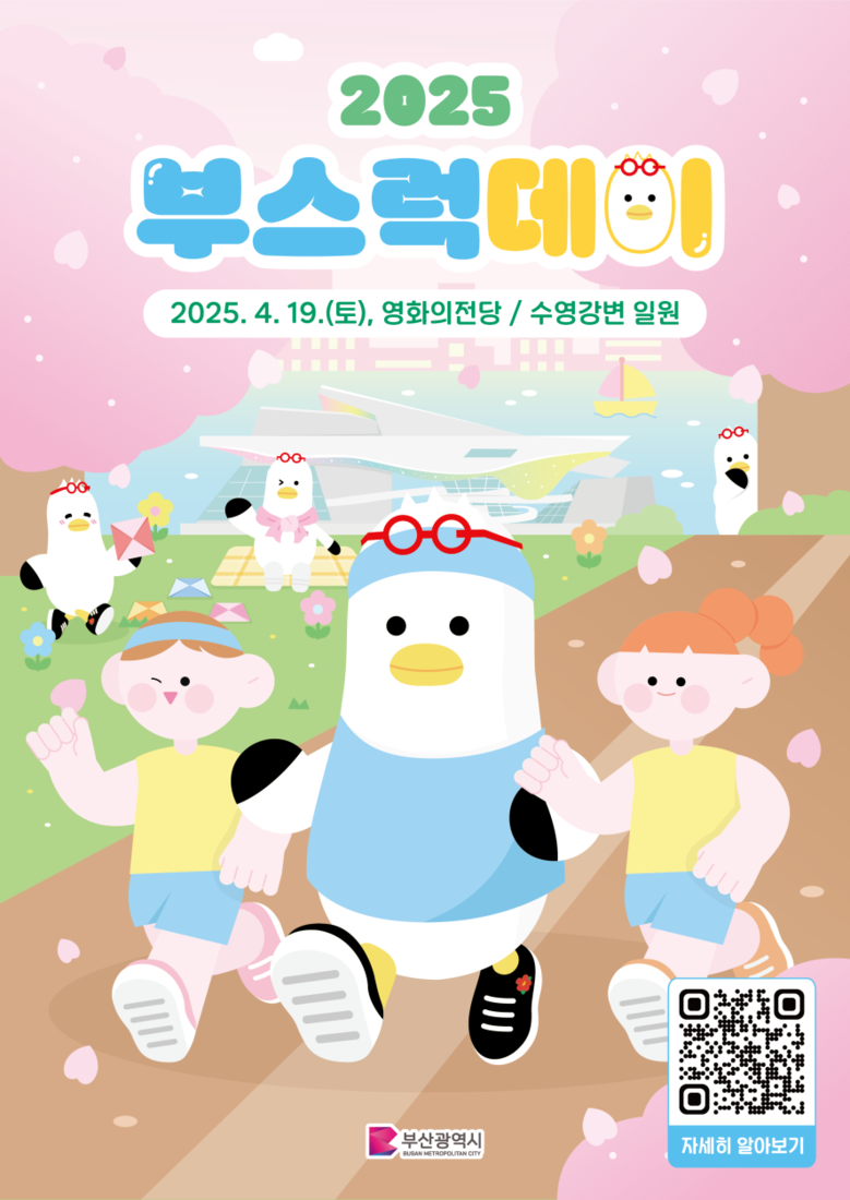 부산시(시장 박형준)는 시 소통 캐릭터 '부기' 데뷔 4주년을 맞이해 오는 4월 19일 영화의전당과 수영강변 일원에서 '2025 부스럭데이 <부기런>'을 개최한다고 밝혔다.