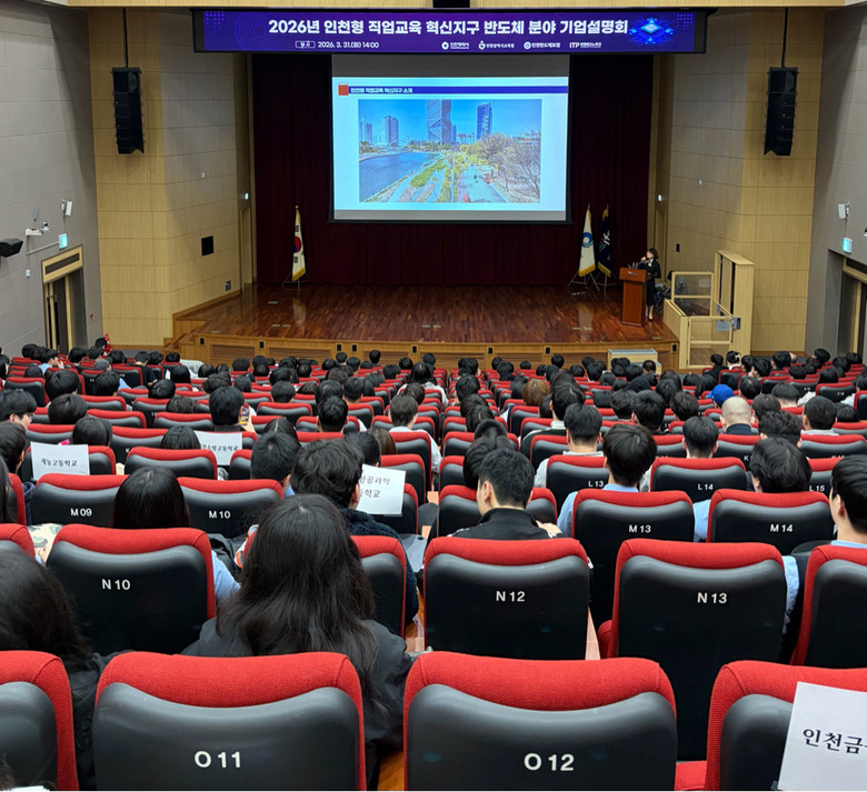 [인천 세계타임즈=심하린 기자] 인천광역시교육청(교육감 도성훈)은 지난 31일 인천경제자유구역청에서 관내 직업계고 학생 300여 명을 대상으로 ‘2026 직업교육 혁신지구 반도체 분야 기업설명회’를 개최했다.