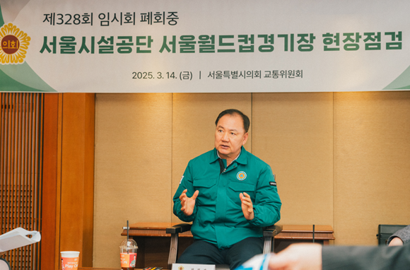 [서울 세계타임즈=이장성 기자] 이병윤 서울특별시의회 교통위원장(국민의힘, 동대문구1)이 3월 14일(금) 오후 2시 제328회 임시회 폐회 중 서울시설공단이 운영하는 서울월드컵경기장을 방문하고 경기장 잔디상태 등 주요 시설들에 대한 점검을 실시하였다.