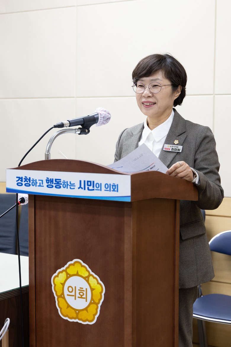 [순천시 세계타임즈=우덕현 기자] 순천시의회 최미희 의원(진보당, 왕조1)이 대표 발의한 「순천시 건설기계 공영주기장 설치 및 운영에 관한 조례안」이 3월 27일 제293회 임시회 제2차 본회의에서 최종 의결됐다.